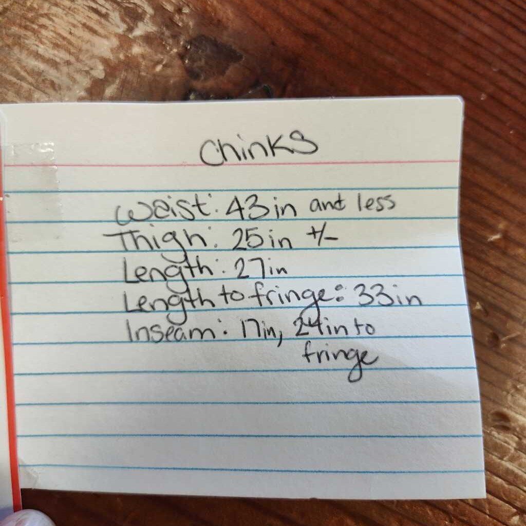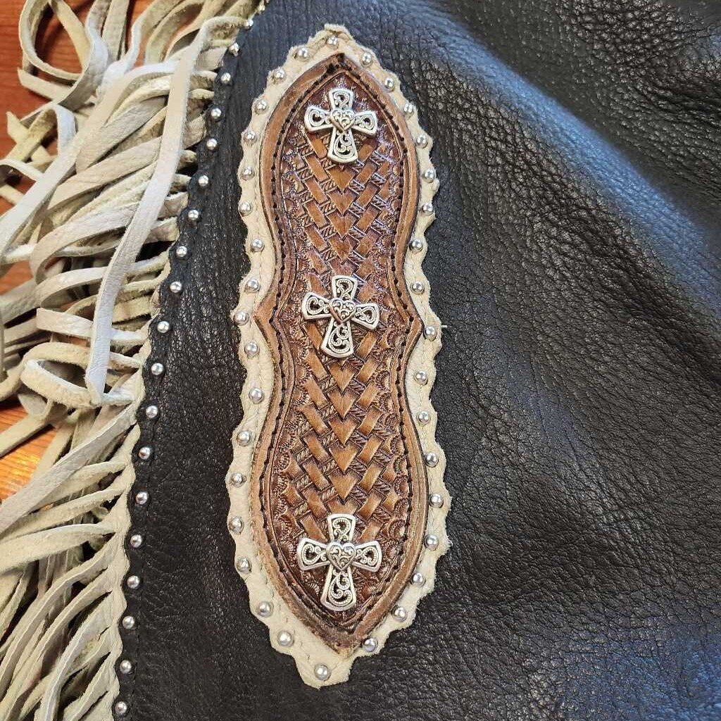 Chinks with basket weave and cross details