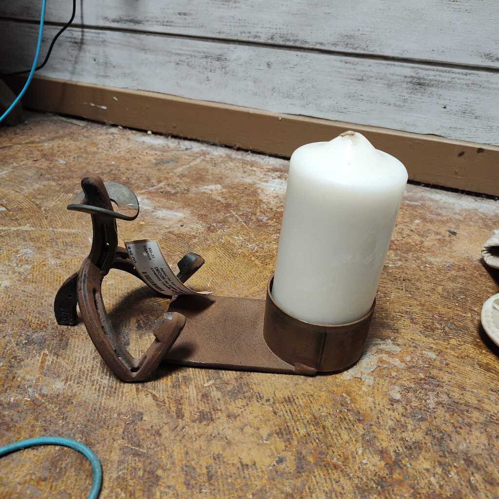 Horseshoe cowboy candle holder