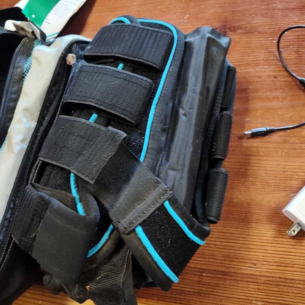 Like new- bag has tags, lipper broken, comes with charger and both ice packs