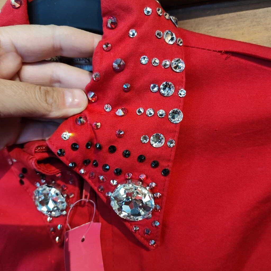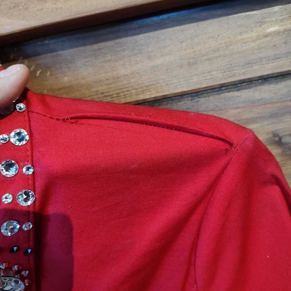 Some Left shoulder loose stitching, and a few missing gems. great starter show top!